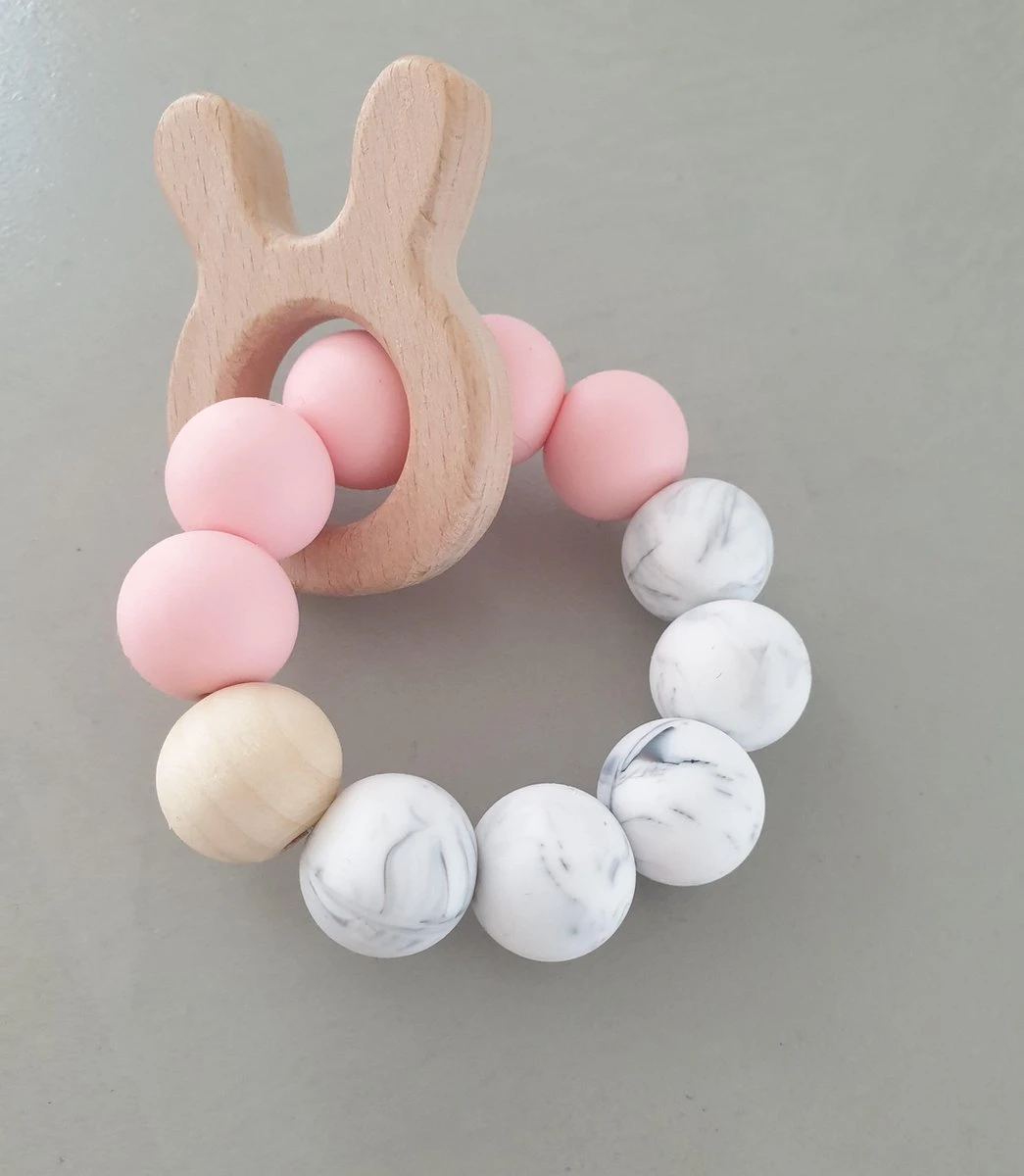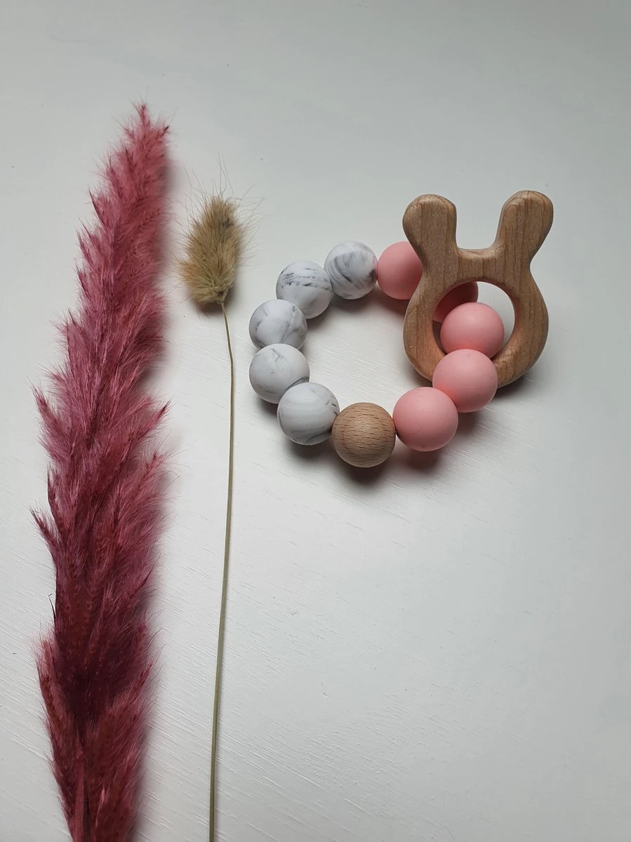 De siliconen kralen hebben een verzachtende werking op het tandvlees. Voor extra verkoeling kun je de bijtring in de koelkast leggen.