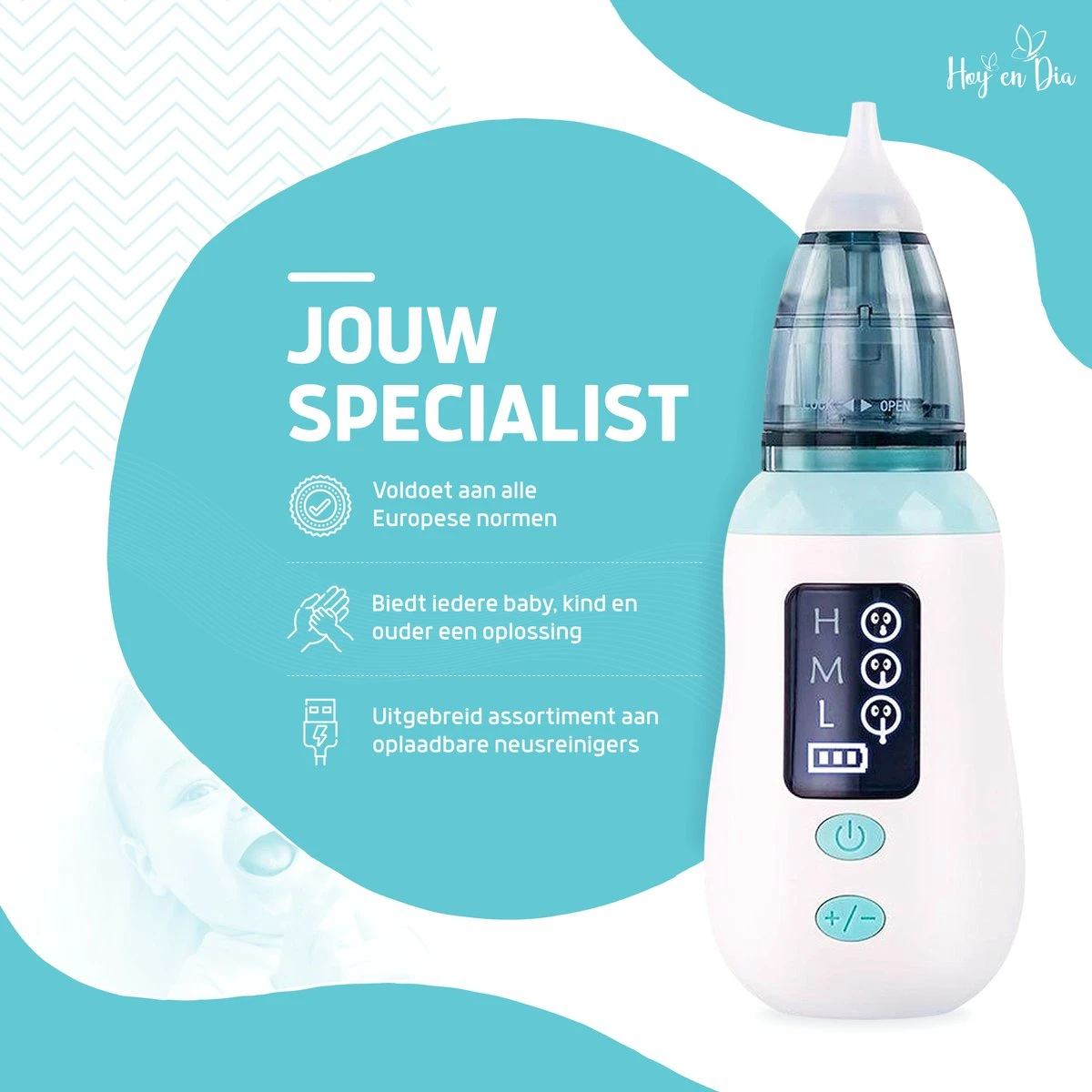 We kennen het allemaal. Ons kindje die continue huilt en niet goed meer slaapt vanwege een verstopt neusje. Verhelp nu veilig, hygiënisch en snel dit vervelende terugkerende probleem. En ervaar het gemak van het verwijderen van loslopend neusslijm met de neusreiniger van Hoy en Dia.