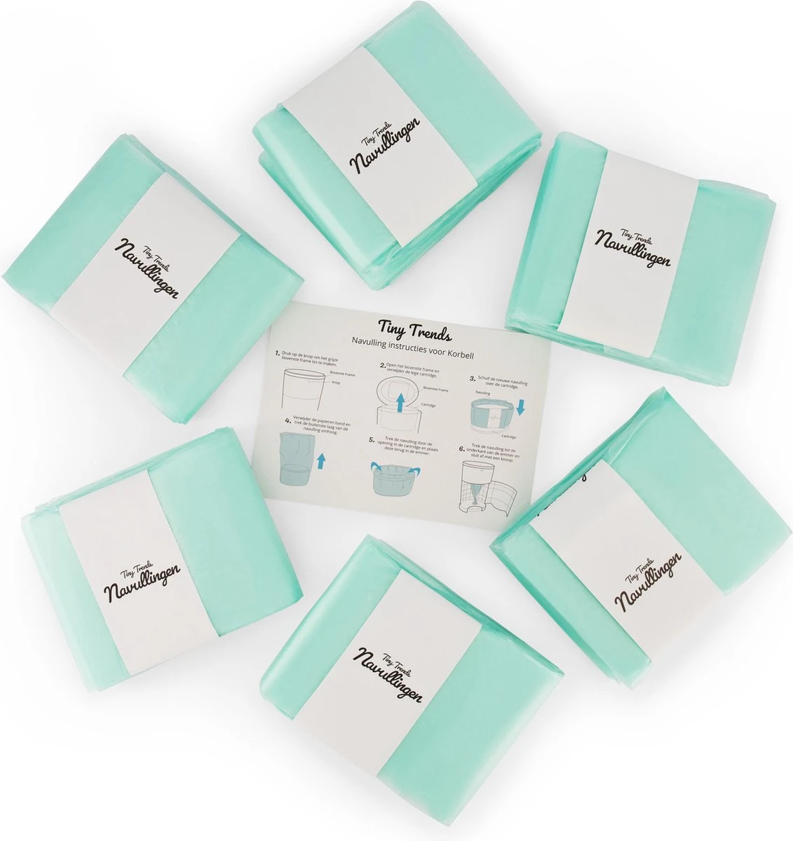 Onze Tiny Trends luieremmer navulling is geschikt voor o.a. de Korbell Luieremmer om op een hygiënische en gemakkelijke manier gebruikte luiers weg te kunnen gooien. Onze zakken zijn met hun 16 liter zelfs een klein stukje groter dan de originele Korbell navulling, waardoor ze nog makkelijker passen. Eenvoudig luiers weggooien zonder nare geurtjes in de babykamer.