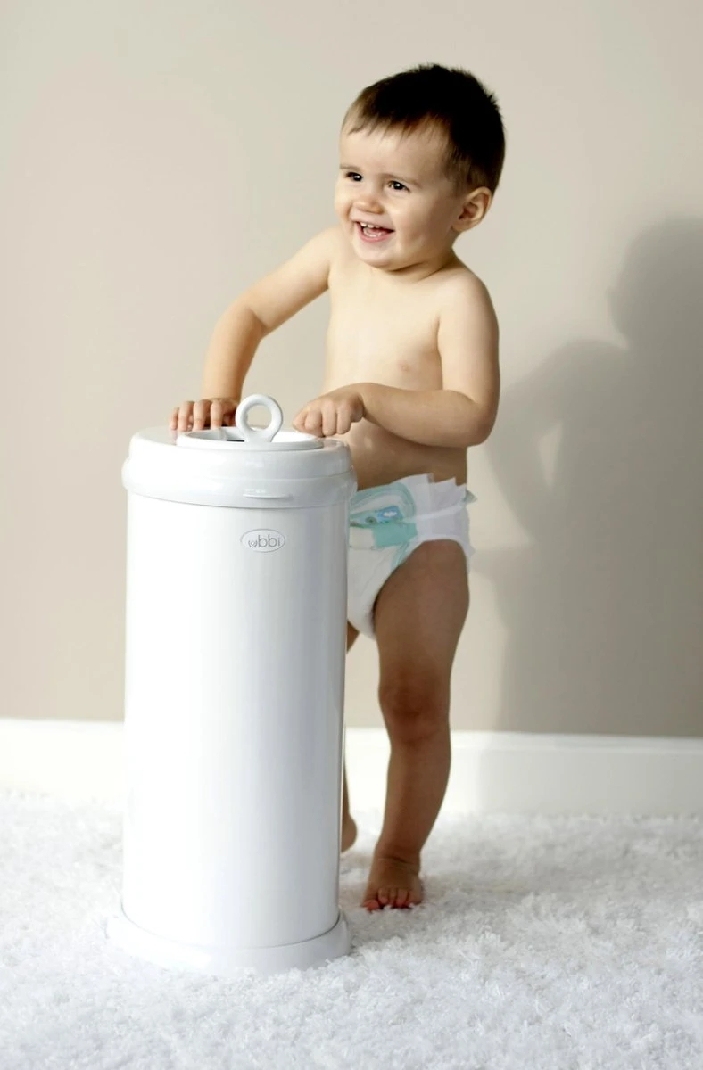 De UBBI is makkelijk te openen en de zakken zijn zeer makkelijk te wisselen. Door het unieke schuifsysteem ontsnappen er minimaal geurtjes tijdens het openen en sluiten van de emmer. De UBBI is tevens voorzien van een kinderslot zodat de kleintjes niet bij de vieze luiers kunnen komen. En is je kind uit de luiers? Dan gebruik je de UBBI in je badkamer, toilet of keuken. Afmeting: 58 cm (H) x 38 cm (D) x 27cm (B).